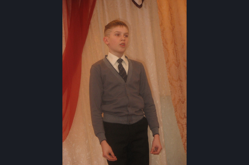 Открытием этого конкурса стал Дмитрий Службин (рук. О.В. Андреева, Новоцелинная СОШ). Дима при чтении стихотворения «Место в строю» Л. Чикина покорил всех проникновенным глубоким голосом, мужественностью, внутренней силой. Он на сцене «проживал» события войны, «пропустил» через себя всю боль главного героя произведения.